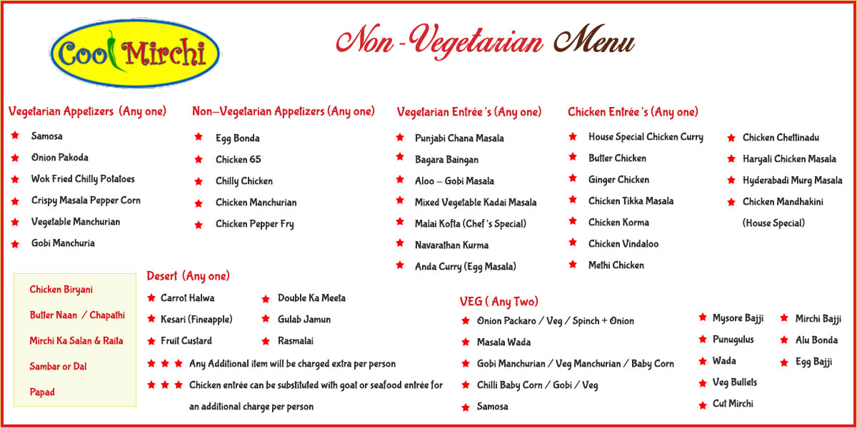 Please contact us for any event you might be planning. We cater to birthday parties, marriages, receptions, Pooja’s and family gatherings.